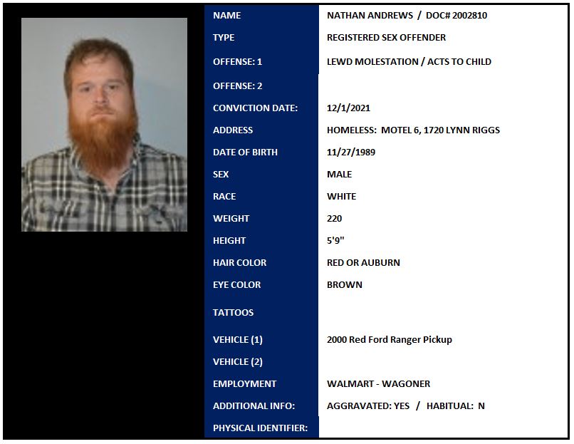 Address: Transient – Studio 6 Hotel 1720 S Lynn Riggs Blvd, #215, Claremore, OK